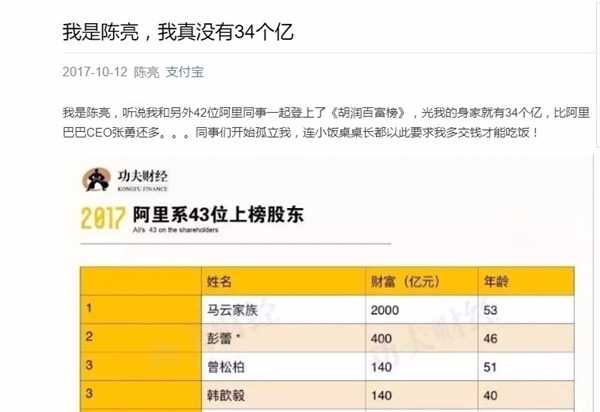 不過,這些螞蟻金服的富豪高層們,紛紛在支付寶公眾號上發文,以戲謔的口吻質疑自己的富豪身價。