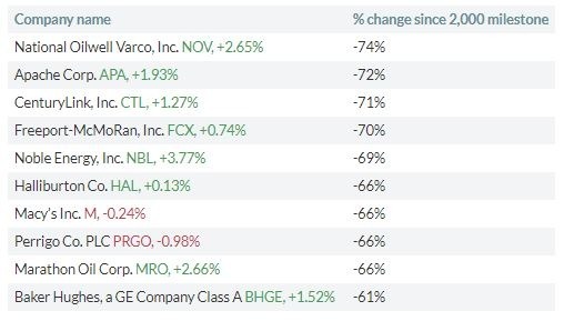 下圖是標普 500 指數中波動幅度最大的個股的一覽表: