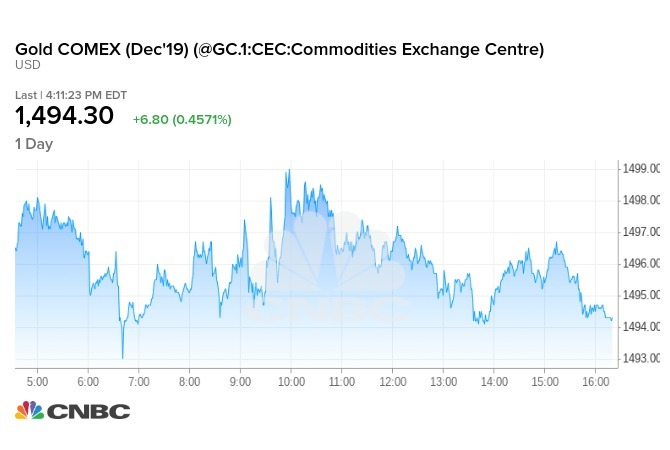 - 12 月交割的黃金期貨價格上漲 8.20 美元或 0.6%,收每盎司 1495.70 美元。