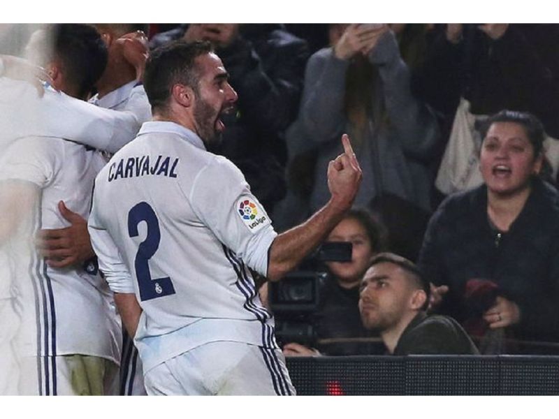 皇家馬德里在日前客場對決世仇巴塞隆納的西甲「國家德比」戲劇性終場前1:1追平,後衛Dani Carvajal在隊長Sergio Ramos頂進追平分後向巴薩看台比中指挑釁被攝影機捕捉下來,他賽後也為這個行為道歉。