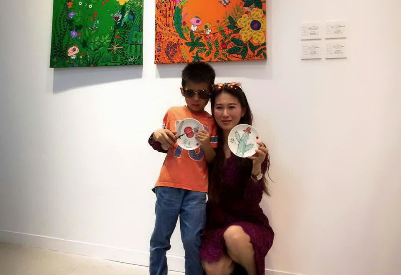 吳為的所有畫作都是畫在瓷盤上面,雖說賣出一個2000元,總價只需32000元,但已經給了這個6歲小男孩最大的鼓勵;至於米凱莉則畫了4幅畫,賣出一幅70X70公分的小畫,價值13萬5000元,但其實米凱莉也有瓷盤畫作,但只展不賣,因為展出前就已經被人訂光。