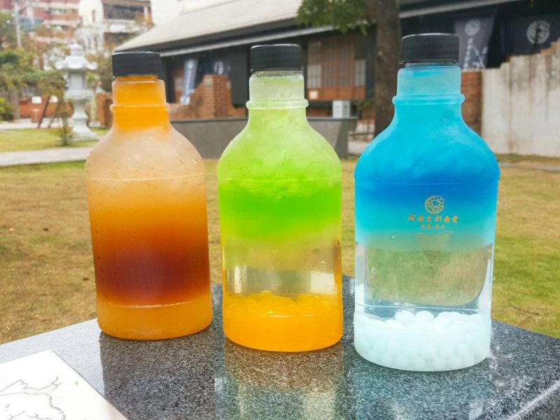 業者除了研發各種日本特色茶品,並結合牛奶或豆漿打造出漸層,還研發出獨特的氣泡飲料,像是整瓶水藍如大海般的「海底珍珠」,是用七喜氣泡飲料加藍柑橘糖漿調製出來,底層加入會爆漿的優格珍珠,喝起來會有啵啵啵的感覺,非常特別!另外,業者還與生技業者合作,推出「烏漆抹黑」黑蒜晶及「口中爆破」的魔豆酵素飲品,造型宛如遊戲中幫玩家補充MP與HP的魔法能量水,不僅有趣也挑戰民眾味蕾。
