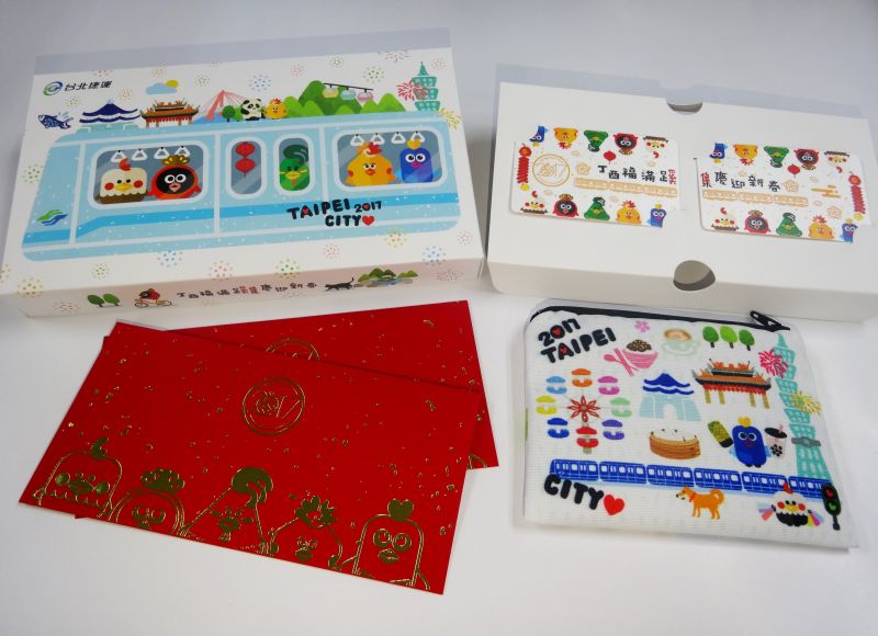 此外,今年臺北捷運公司紀念生肖車票亦首度附贈雞年限定款式的年肖外觀零錢包,外觀延續與票卡主視覺一致的風格,結合「雞年生肖」及「捷運景點」與「特色美食」為主題,以代表「五德良禽」的手繪小雞生動穿插其中由捷運列車串連,帶動臺北城市生生不息的活力。