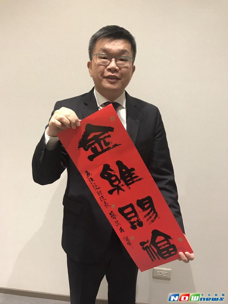 立法院副院長蔡其昌今年的春聯,又再度邀請到國內知名書法家王振邦揮毫春聯,題字「金雞賜福」,短短一天就發完了;除夕夜,蔡其昌將在清水首發「幸福小紅包」。