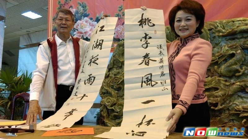 為迎接農曆春節,嘉義巿議會20日上午在議會大廳舉辦新春揮毫贈春聯暨插花活動,多位書法名家現場揮毫贈春聯,大師出手吸引民眾排隊索取,還有婦聯會婦女朋友們大秀花藝,插花完成喜氣盆景,嘉義巿議長蕭淑麗觀賞同樂,並祝福大家過個富貴好年。