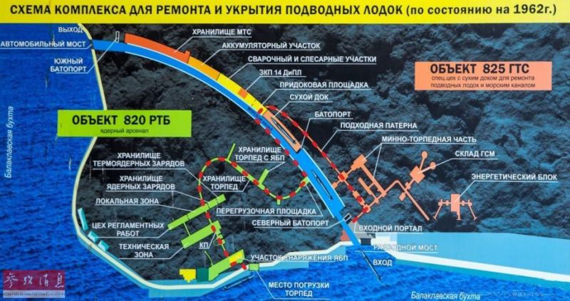 根據新華網報導,這是供冷戰時期,蘇聯海軍潛艇秘密藏身的秘密基地。在蘇聯軍方的解密文件中它只有一個代號:825GTS設施,該基地曾駐紮過多型潛艇並儲存有核武器。