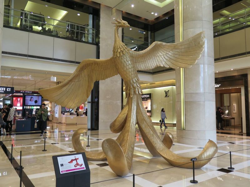 新光三越此次再度與亞洲現代雕塑藝術家賴冠仲合作,以雞為鳳凰世俗的化身為發想,高達4公尺的鳳凰作品佇立於新光三越台南新天地G樓大廳,象徵新的一年展翅高飛,讓民眾提前感受不一樣的藝術年味。