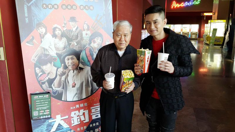 「廢五金小開」吳俊宏,新年期間陪著75歲高齡老爸,步入電影院看豬哥亮賀歲片《大釣哥》,一償老爸40年未進電影院的夢。