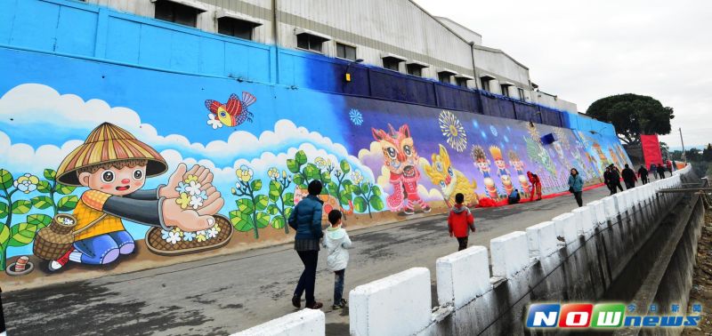 活動穿插彩繪牆揭牌儀式,該面三家春彩繪牆就在花壇鄉新三家春段876地號,離三春老樹不遠,彩繪牆高11米、寬78米,圖案內容帶出田園農莊生活的意象,動物擬人化的圖案和美麗的山水景色,突顯花壇鄉地理位置臨八卦山脈,農作物產業富饒,彩繪牆變成行銷當地產業的活招牌,令人驚豔。