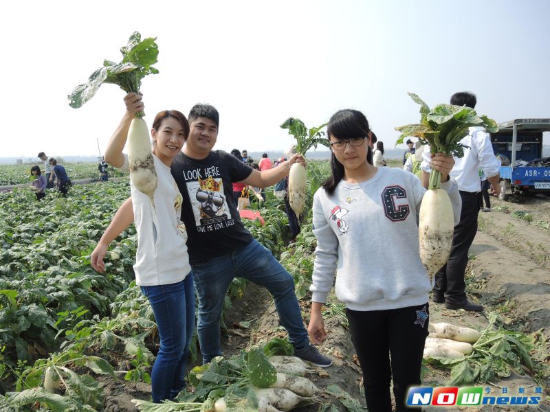 「拔啊、拔啊,拔蘿蔔!」77年次彰化縣溪州鄉青年農民鐘翊禹,5日開放在濁水溪高灘地的蘿蔔田,讓民眾採蘿蔔體驗1日農夫,由於天氣很好,太陽公公露臉,一整天下來,有來自基隆東南扶輪社、大里扶輪社以及新竹、台中等縣市的親子,近千人都下田體驗拔蘿蔔樂趣,紛紛喊著「太好玩啦!」現場充滿歡笑聲。