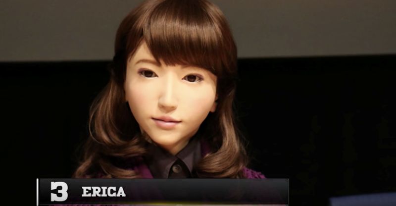 2.Erica:被公認為目前世界上最美機器人,年齡設定為23歲,相貌綜合各種美女的長相,由於擬真程度高,就算置身人群,乍看之下也無違和感,是大阪大學和京都大學研究團隊研發的成果,她喜歡看卡通甚至和人閒聊,相當人性化,如果你問她幾歲,她還會很有個性地回答,「甘你屁事!」