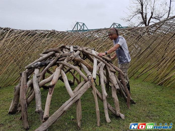 除了創作理念深具哲理,對創作素材的選用,李蕢至也經過一番思索。他說宜蘭有山有水,所以選擇產自山上的竹子作為「漣漪迷宮」的主要材料,而漣漪的中心點則以漂流木來呈現,這些都是就地取材,其實也是避免材料旅程可能帶來的環境汙染。除了就地取材,李蕢至表示,一般固定形態的藝術創作,可以做好之後再拿到展場展出,但大地藝術通常需要因地制宜。他說,就以「漣漪迷宮」來說,他雖然事先有構圖,但到了現場之後,發現上面有樹木,所以他就將這些樹木也包含到大地藝術創作的作品當中。而之所以以「棚」的概念呈現,則是因為冬山火車站的設計就好像一座絲瓜棚,「漣漪迷宮」的竹棚概念,就是呼應旁邊的冬山火車站。