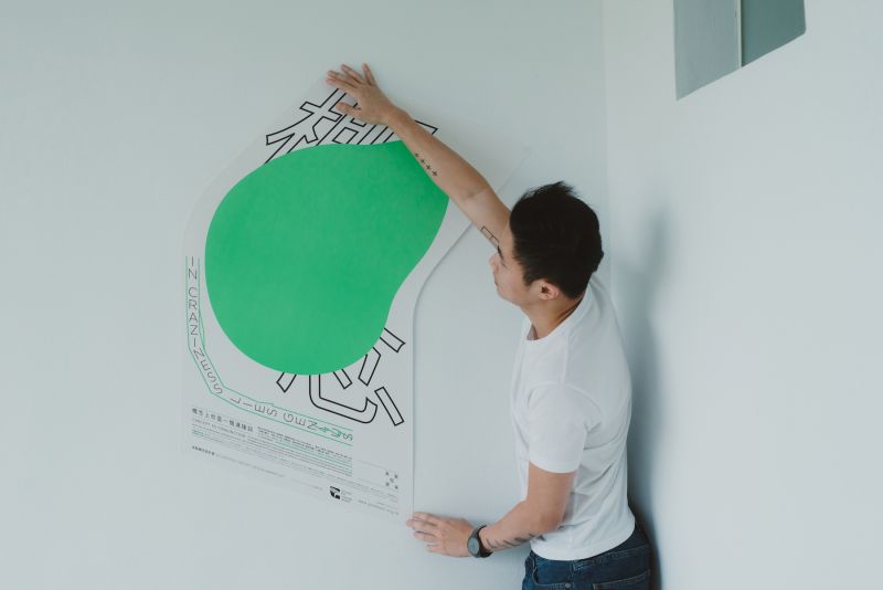 總是不斷挑戰自己的聶永真,這次主視覺設計顛覆以往觀看的形式,打破傳統垂直與水平的框線,呈現不規則曲線。他表示,「一個夠瘋狂的設計師,看到的點、線、面或空間是不一樣的。例如我們看到一個平面的東西,可能從他的眼中是變形的。我也會希望看到海報的人,反思既有的觀看方式,其實可以有一點反常。」聶永真還提到,海報中呈現流動感的螢光綠區塊,象徵設計師在發想創意時,腦袋裡瘋狂荒謬的點子不斷地變動、思索的過程。因此,他希望透過現代感的表現手法,引起觀看者的好奇心,進而拋出創新、前瞻的概念設計。