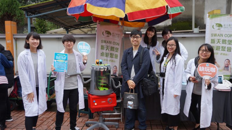 有感於人們隨著年齡的增長笑容頻率卻越來越少,世新大學公共關係暨廣告學系畢業製作小組一手好牌(Hand Plus+)遂與德國新天鵝堡桌遊合作,製作了一台「快樂製造機」(HAHA MAKER),以「有你來作樂」為主題,邀請大眾一同作樂。