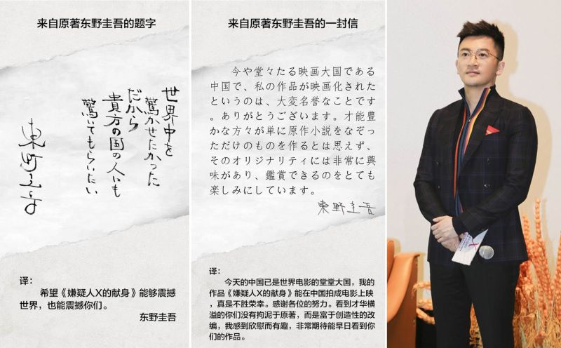 信中,東野圭吾稱讚製作團隊的努力,「看到才華橫溢的你們沒有拘泥於原著,而是富於創造性的改編,我感到欣慰而有趣。」對此,蘇有朋導演坦言,原著豐富的人性表達,讓他想踏踏實實講好一個令人動容的故事。