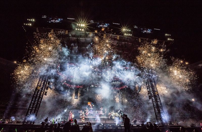 雖是戶外搭台,但不論是燈光舞台、音響設備等,四面台的每一邊各增加3面大型LED屏幕,360度視覺無死角立體呈現,甚至連內場觀眾席都是特別訂製打造,全場也啟用互動式螢光棒,還出動空拍機捕捉現場畫面及與觀眾的互動。
