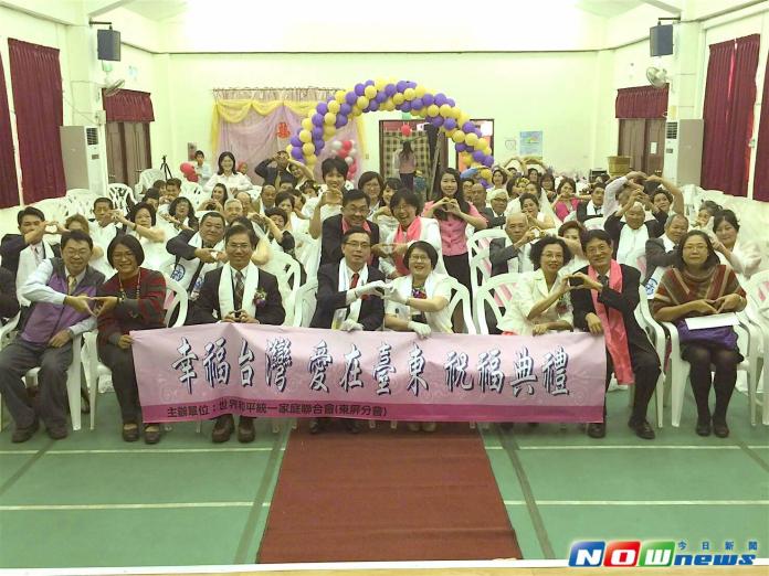 昨(2)日下午假台東縣豐里國小,由世界和平統一家庭聯合會東屏分會首次於山明水秀的台東舉辦「幸福台灣、愛在台東」祝福典禮,會中有二十多對從結縭五年至六十年的夫妻,其中更不乏有三代、四代同堂的家庭,於清明連假期間攜家帶眷一同見證溫馨美好的典禮。