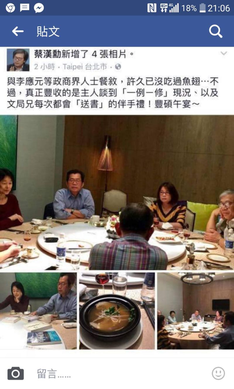 李應元強調,蔡漢勳臉書文章讓外界有誤解,自己不是昨日聚會主任,也不是主要來賓,是由一位陳先生邀請一位共同朋友,與美國回台的黃先生,雖然應邀出席,但也遲到20分鐘。