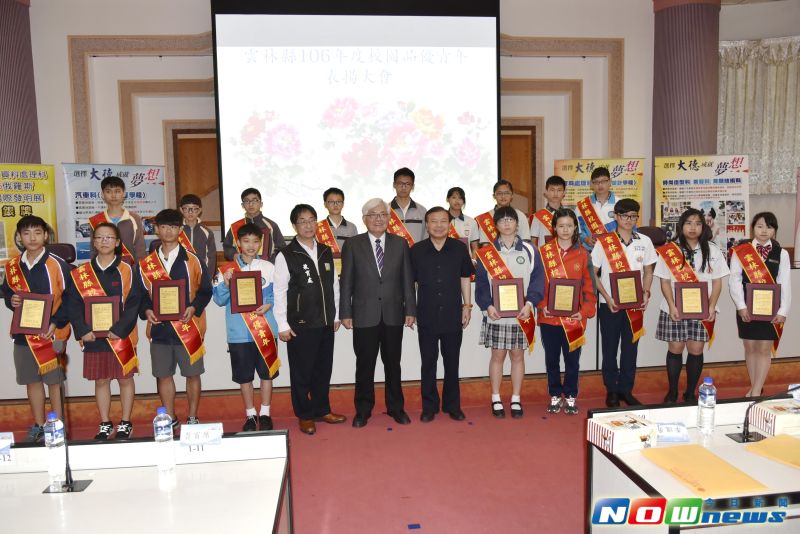 雲林縣106年度校園品優青年楷模頒獎典禮活動,13日上午於斗南大德工商國際會議廳舉行,縣長李進勇親自頒獎表揚,並恭賀獲獎的24所國中64位品優學生榮獲殊榮。