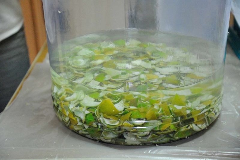 製作方法則是先切除檸檬果肉,剔除內膜部分,取400公克檸檬皮含精油的部分 (約15顆),倒入1公升濃度75%的酒精內浸泡3天。3天後將果皮濾出,再將3公斤的水、30公克的食用鹽、20公克的小蘇打粉及300公克的椰子油起泡劑依序加入精油酒精中並攪拌均勻即可使用。