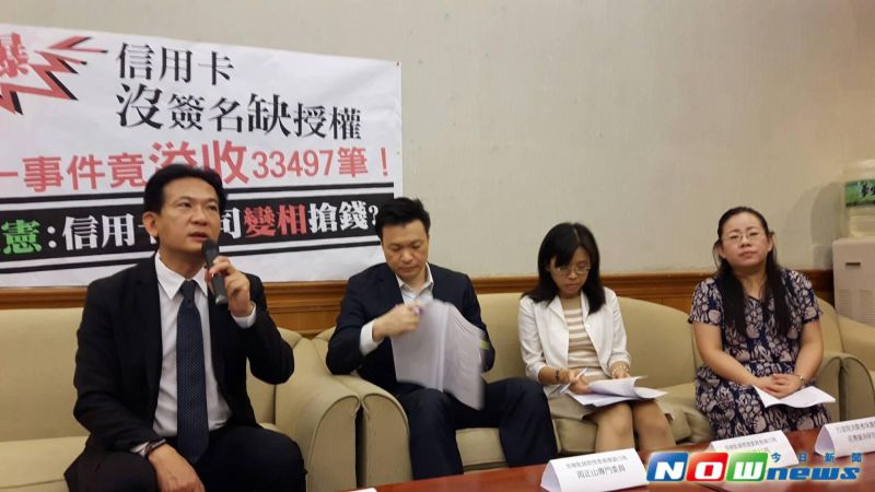 林俊憲指出,上周接獲民眾陳情,在商家消費時刷卡付款,沒想到在隔日同筆款項,又被重複扣款,原以為單純是商家重複扣款的問題,沒想到至信用卡發卡行富邦銀行詢問後發現,竟是信用卡收單公司「環匯亞太」,在沒有消費者簽名、也未獲得授權碼的情況下,直接扣款兩次,銀行也照單全收,如果民眾沒有仔細對帳的話,將近一萬元的金額就直接被收單公司收走了,扣款程序明顯有問題。