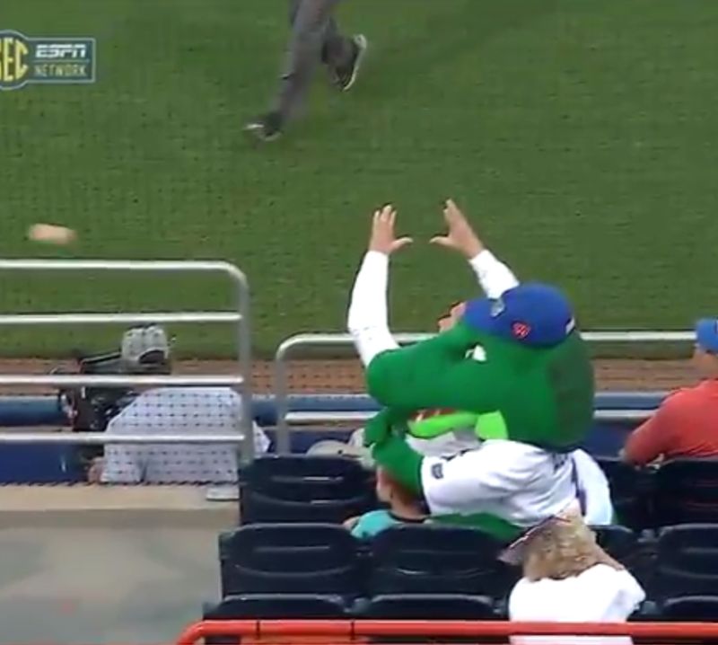 影片中可見,佛羅里達大學短吻鱷隊的吉祥物Albert Gator當時正在看台區,卻看到一顆棒球即將砸中男童,於是Albert Gator立即用手和鱷魚頭保護,才沒有讓男童因此受傷,而Albert Gator隨後更假裝昏倒,男童則是趕緊幫忙CPR。
