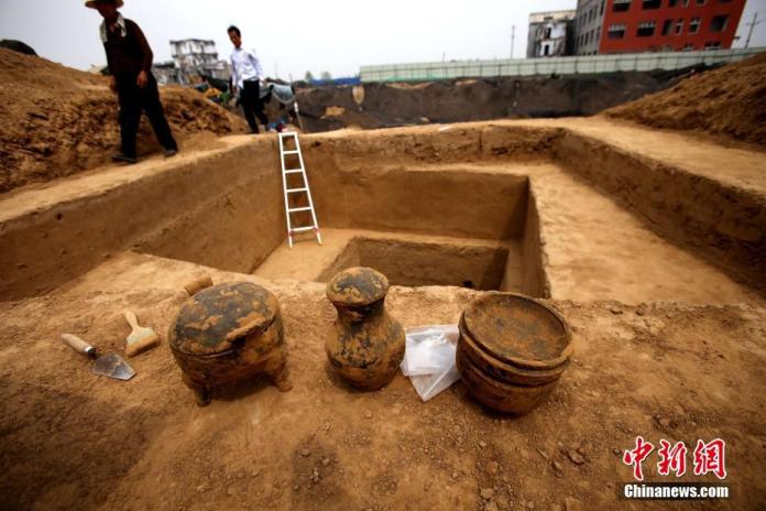 根據新華網報導,現場發掘出東周時期的隨葬陶器、配飾水晶、銅簧、祭祀用的雞骨頭等出土。據現場工作人員介紹,目前已發現了古代墓葬30座,基本都是東周時期的墓葬,目前發掘工作還在進行中。