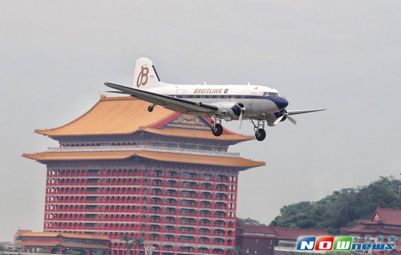 這架國際知名錶廠百年靈所屬的DC-3雙引擎螺旋槳客機,將在3至9月進行盛大的「DC-3環球之旅」環球之旅,25日飛抵台北松山機場,展開為期3天的展示飛行活動。由於DC-3的孿生機種,也就是軍用型號的C-47運輸機,曾是我國早年空軍運輸主力,這次同型機再度飛臨台灣,航空迷早已在機場外準備好相機拍照。