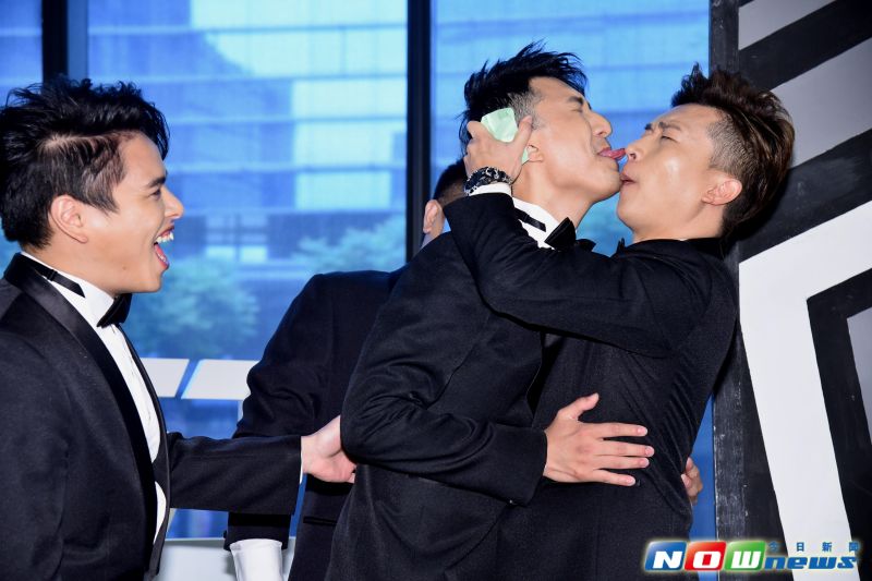 張立東、陳大天、大根、惡魔、林東緒、大寶及阿量2日出席《搞笑者們Live Show》記者會,活動上笑聲不斷,不管是舌頭磨蹭鼻子,或是男男互吻額頭都能玩,張立東還笑稱鼻子被舔能順便去角質,而他們現場所有怪招都願意接,完全不怕人笑。