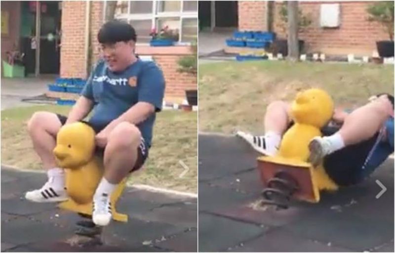公園有許多遊樂設施供小朋友玩樂,大朋友偶而也會想要玩一下,懷念兒時記憶。但日前有一名男子在公園玩著搖搖鴨,就發生悲劇了。