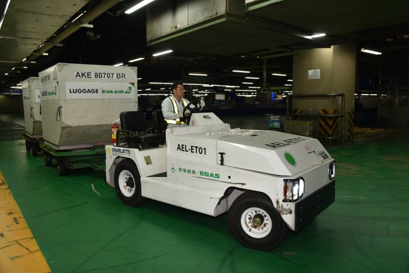 桃園機場公司為降低行李拖車碳排放量,同時改善室內工作場域空氣品質,計畫要將百餘輛行李拖車及行政車輛汰換成電動環保車,桃機公司今(5)日表示,目前桃機設置2輛電動車試辦,預估每汰換一輛每年可以減少10餘噸碳排放量,桃機公司目標2019年前將汽柴油車輛都汰換為電動車。