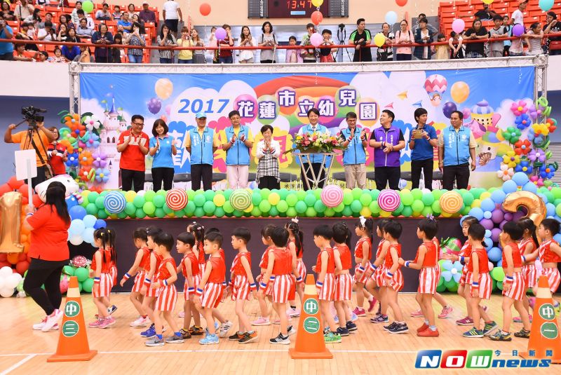 「這是歡樂的氣氛,感動的時刻,讓我們一起舞動身體,展開今天歡樂的時光。」 花蓮市長魏嘉賢宣布活動開始。隨著音樂聲起,幼兒園鼓隊進場演出,隨著節奏展開各種隊形,現場響起熱烈掌聲;隨後由四名小朋友舉校旗進場,走到司令台前,在台上的花蓮市長魏嘉賢以最敬禮致意,正式展開市立幼兒園的運動大會。