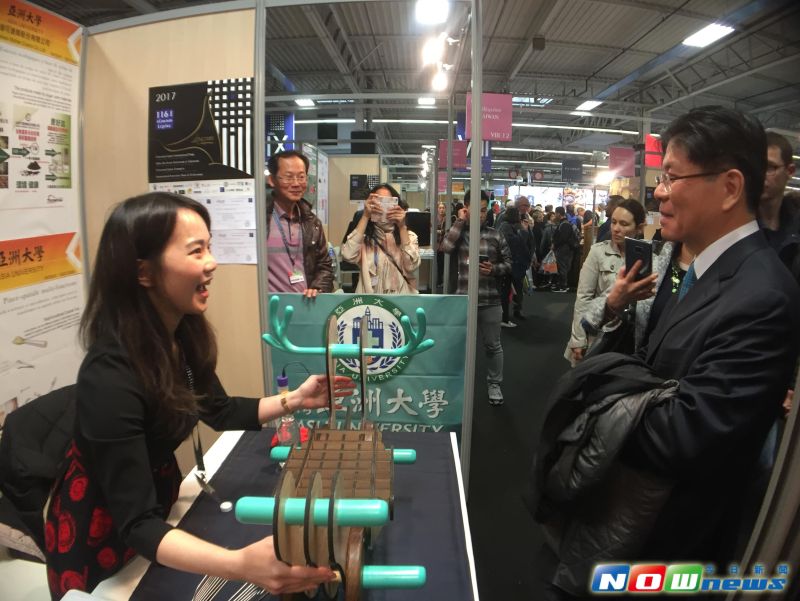 負責5件作品到巴黎參展的朱以恬助理教授表示,獲金牌的「以甘蔗渣製造的環保塑膠餐具」,是亞大經管系在職專班賴俊榮與產學合作廠商共同研發,因實務經驗加上環保創意,產品已量產上市,深受好評。至於銀牌獎的「多功能兒童學步車」,可變化成學步車或搖椅,造型可愛頗受幼童喜愛。