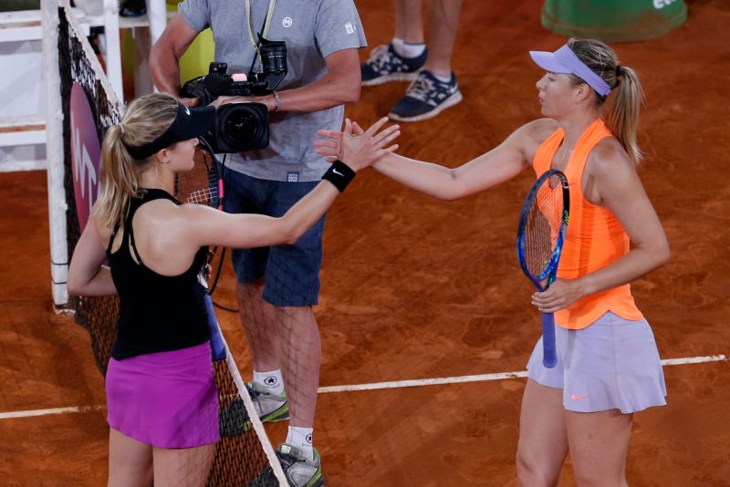 昨日是兩人經過此一事件後第一次交手,歷經近三小時的交戰後Bouchard以7-5, 2-6, 6-4成功擊敗Sharapova,開心表示自己這場比賽比以往來得更有贏球的動力。