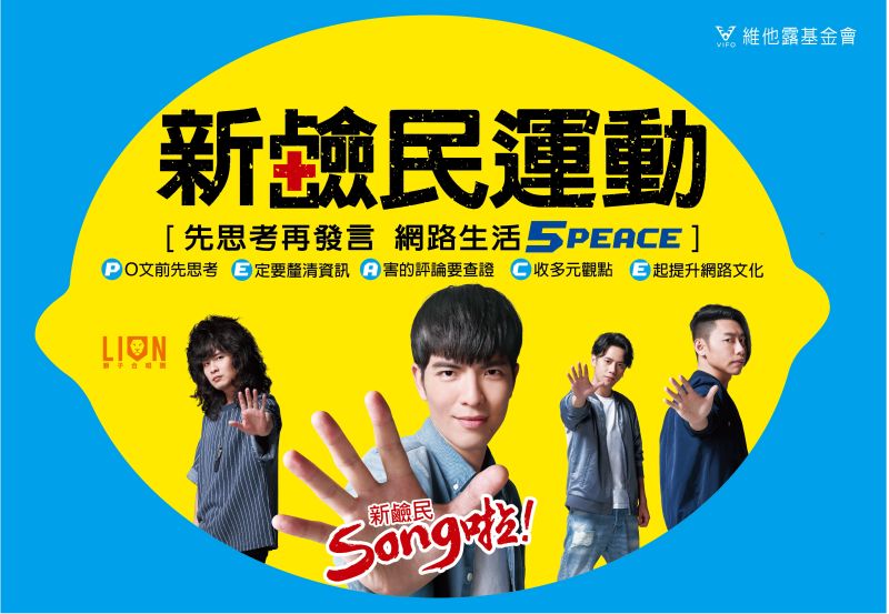 2015年的新鹼民運動,發動眾多藝人參與的檸檬挑戰後,今年維他露基金會邀請獅子合唱團擔任新鹼民運動公益活動代言人,聯合推出史上最『蕭魂』的公益歌曲 【新鹼民Song啦】,5/14(日)早上九點在總統府前大螢幕萬人首播,讓在場的民眾大飽耳福。希望透過新鹼民SONG啦呼籲-『先思考 再發言,網路生活5PEACE』,希望大家在面臨各式各樣的網路資訊時,都能根據5PEACE的步驟來釐清事情的真相與原委,同時推出一個分享MV就捐百萬給公益團體的活動!藉此把這股正面力量擴散出去!