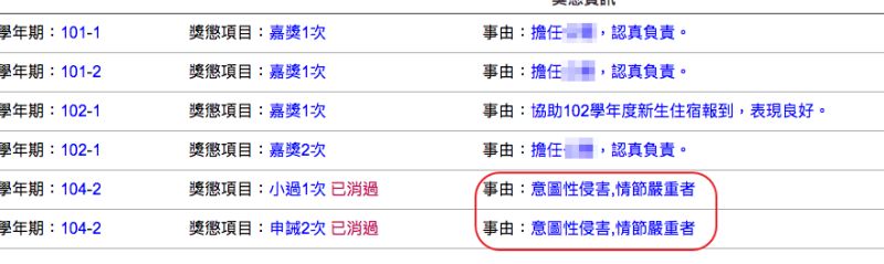 國立高雄師範大學學生獎懲系統,17日疑因資訊人員疏失,導致學生登入後均顯示一名數學系同學的獎懲紀錄,其中赫然出現該生兩度因「意圖性侵害,情節嚴重」遭記小過及申誡2支,讓該生感到名譽受損相當憤怒,此事也在臉書「靠北高師大」中引起熱烈討論。