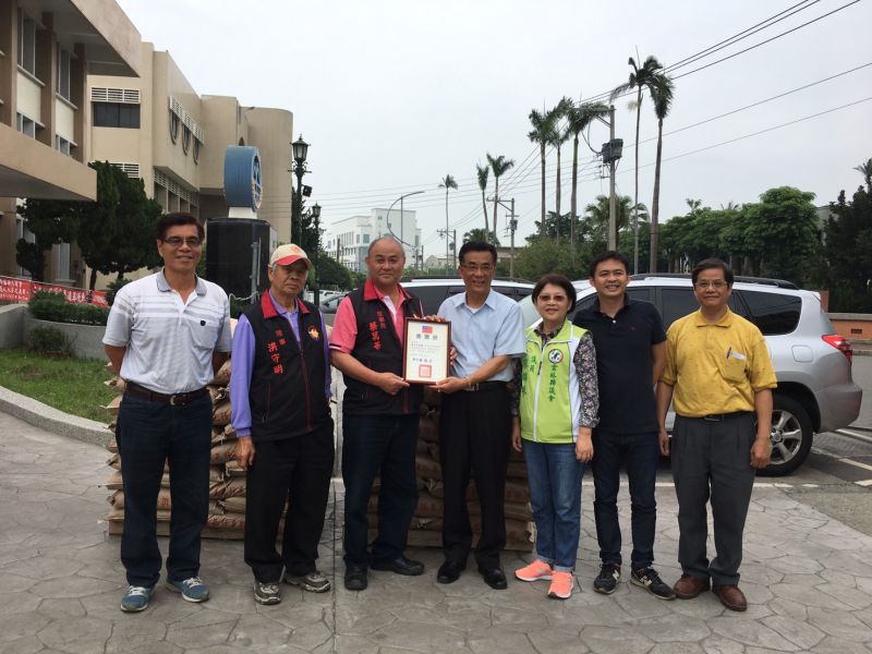 在雲林縣議員廖錦珠從中牽線促成下,社團法人嘉義市嘉邑行善團19日順利捐贈二崙鄉、崙背鄉各500包常溫瀝青,由兩鄉公所均派代表接受,同時也頒贈感謝狀,感謝嘉邑行善團義行。