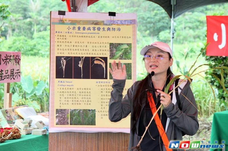臺東場陳信言場長表示,蘭嶼本島居民大多數為雅美(達悟)族原住民及少數公務人員與漢人,現有人口約5,036人,耕地面積僅765公頃,其中水田有173公頃、旱田有592公頃,每一農戶耕地規模很小,亦無完整的農道或水利設施,主要栽培作物有芋、甘藷、小米及落花生等。蘭嶼從事農業生產農民平均年齡超過60歲,因地處偏遠,較少吸收外界資訊,故其作物栽培方式仍遵循傳統方法種植,如小米田以撒播方式種植,致使小米植株生長空間擁擠、果穗小、產量低,並有品種與地方品系混雜情形,除作物產量偏低外,病蟲害防治技術亦缺乏。希望藉由本次觀摩會,介紹小米新品種臺東8號以及小米常見的病蟲害及防治方法。另外,這兩年來本場亦協助復育蘭嶼傳統黑小米及改進其有機栽培技術,期能推廣農民選擇應用,提高產量增加農民收入。