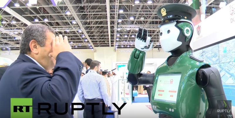 杜拜正式啟用機器人警察!首批機器人警察將配置於景點與購物中心,其具備人類外型,可用阿拉伯文及英文溝通;胸前配備觸控螢幕,以方便民眾與機器人警察互動,例如支付罰單、檢舉犯罪事件。
