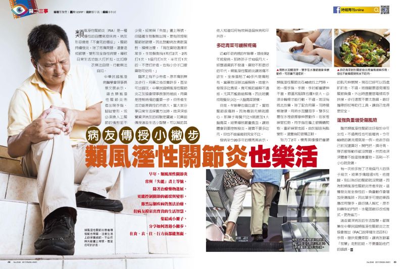 這些資深病友的生活智慧,都匯集在中華民國類風溼性關節炎之友協會推出《RA口說幸福生活百科》手冊,提供免費索取,讓病友跟著「前輩」走對的路,不要重蹈他們的錯誤。