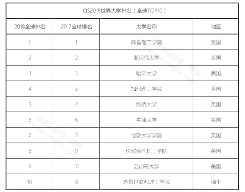 今年榜單的全球前十高校,依舊被美國和英國高校壟斷,其中美國高校占據了全球前4名,並占據了前十中的5席,英國高校占據了前十中的4席,另一所則為瑞士的蘇黎世聯邦理工學院,位居全球第10。