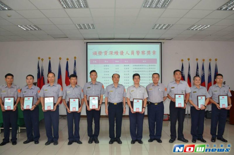 分局長林樹徽表揚並轉頒資深績優人員警察獎章,計有秘書室主任鄭財興、何安所巡佐范倉榮2人獲頒服務滿30年資深績優人員2等1級、2等3級警察獎章,另有行政組組長江一明、保安民防組組長許志豪、保防組組長陳瑞興、何安所警員李俊徵、何安所警員李孟穎、陳信哲、市政所警員許世聰7人代表獲頒服務滿20年、10年資深績優人員警察獎章。