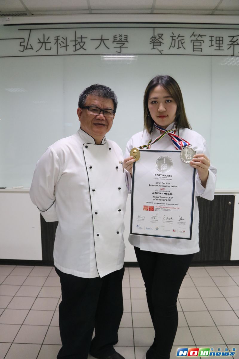 「泰」厲害!弘光科技大學餐旅管理系大一學生潘芷恩,代表台灣到泰國參加世界烘焙廚師挑戰賽亞洲初賽,和各國好手角逐獲得冠軍,將代表亞洲參加2018年世界廚年會烘焙廚師挑戰賽;另一位餐旅系大三學生王孟鍹,前往泰國參加2017泰國廚藝美食挑戰賽,拉糖作品在藝術類組奪冠。