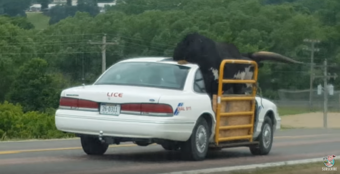 美國一名駕駛日前行駛在內布拉斯加州一處高速公路時,看到有趣的一幕,一輛白色轎車的擋風玻璃被切掉一半,且車頂也只剩下一半,一頭牛則是站在裡面,沒想到牛甚至還站著大便,讓全車的人看了都笑翻。