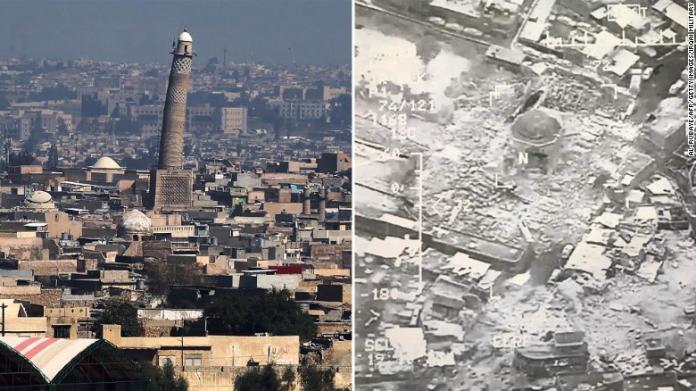 伊拉克軍方在當地時間21日表示,「伊斯蘭國」(Islamic State, IS)21日晚上又「犯下另一項歷史罪名」,把摩蘇爾的努里清真寺及其著名斜塔炸毀。伊拉克總理阿巴迪表示,大清真寺被毀,代表IS認輸。但IS透過媒體指出,美國才是發動空襲炸毀清真寺的元凶。然而,美國官員對CNN強調,IS的聲明絕對非事實。目前尚不清楚到底是哪一方炸毀伊拉克著名古蹟。