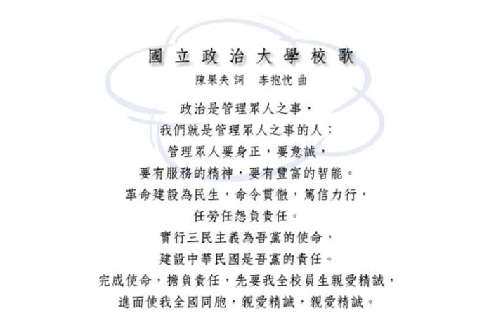 國立政治大學校歌過去因充滿黨國思想引起爭議,學生多次發起拒唱,校方也成立「檢討現行校歌委員會」並上網進行問卷調查。但原訂於23日校務會議上議決卻因議事拖延,最終同意歌詞增修,詳情須等 9 月逐句討論。