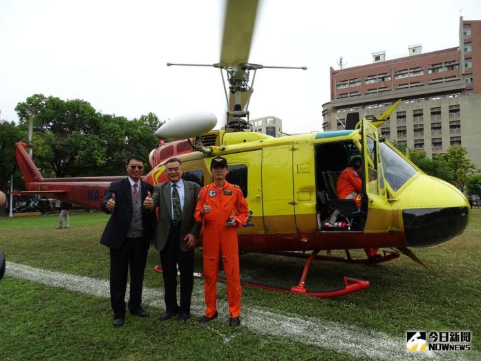 內政部空中勤務總隊致贈成功大學航空太空工程系UH-1H直升機一架,今(12)日上午9時40分降落在自強校區航太系館前,眾多師生及媒體攝影一早齊聚迎接飛機到來,現場一片讚嘆聲。