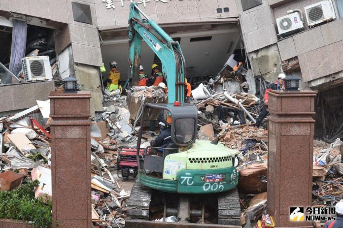 花蓮地震救援工作持續進行,目前發現第 10 名死者。消防員表示,由於死者被壓住,目前只看到腳,尚無法確認身份與性別。