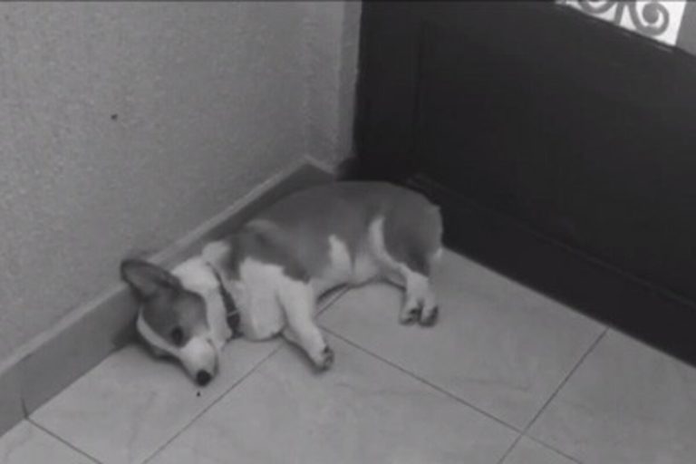 當女主人出門上班,關上大門後,柯基便無奈地趴在玄關大門