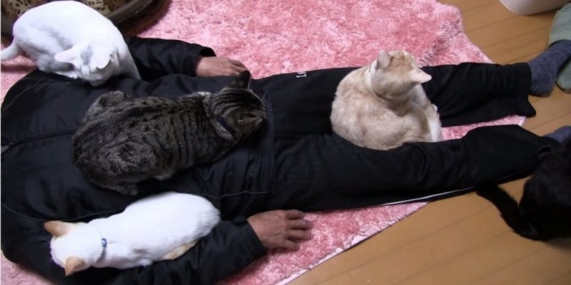 前幾天I小編和大家分享了日本貓友的感人發明-仿腿坐墊,會發明這玩意兒的原因是他家貓咪長年愛睡他兩腿中間,讓他老是被貓咪釘著不能動!事實上,貓咪愛躺的人體部位不止有胯下(羞),像是肚子上、胸口上,以及腋下,都是主子們中意的睡床!日本一位家有多隻貓主子的貓奴,就經常被貓壓床!某天他的太太拍下了他被貓咪們當成睡床的最高境界,保證各位貓奴們一定很有感!